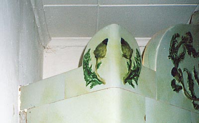V. 1900, Turun kaakelitehtaan valmistama Vaaleanvihreä, kansallisromanttinen nurkkamalli